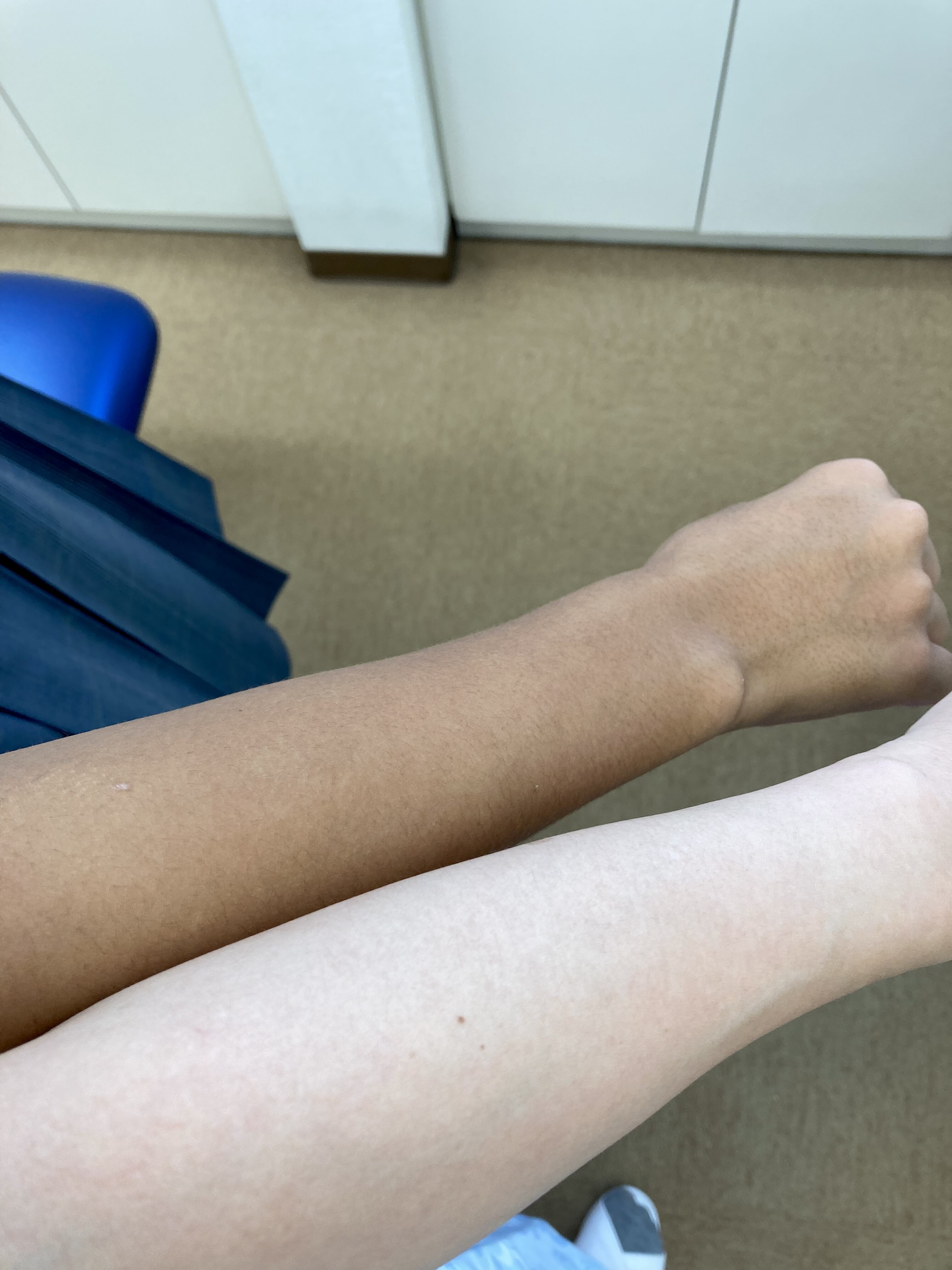 2021 10月 9 17:30:07 夏の終わり…。 こんにちは(╹◡╹)コーディネーターの佐藤です。日向にいると暑くて汗ばむ時もありますが、日陰にいると涼しくて心地よく、秋の訪れを感じます。来週から、ぼちぼち気温も下がってぐっと秋めいてくる様ですよ。さて、土曜日に来院してくれたみゆさん。『みゆちゃん部活頑張ってるねー!』と、ひと目で分かります。なぜなら…、下が私、上がみゆちゃん。顔も脚も腕もこんがり健康的に日焼けして、充実している部活動を体現してます!青春ですね(*´∀`*)夏もそろそろ終わり。と、言うことはこの日焼け姿も見納めでしょうか…。
