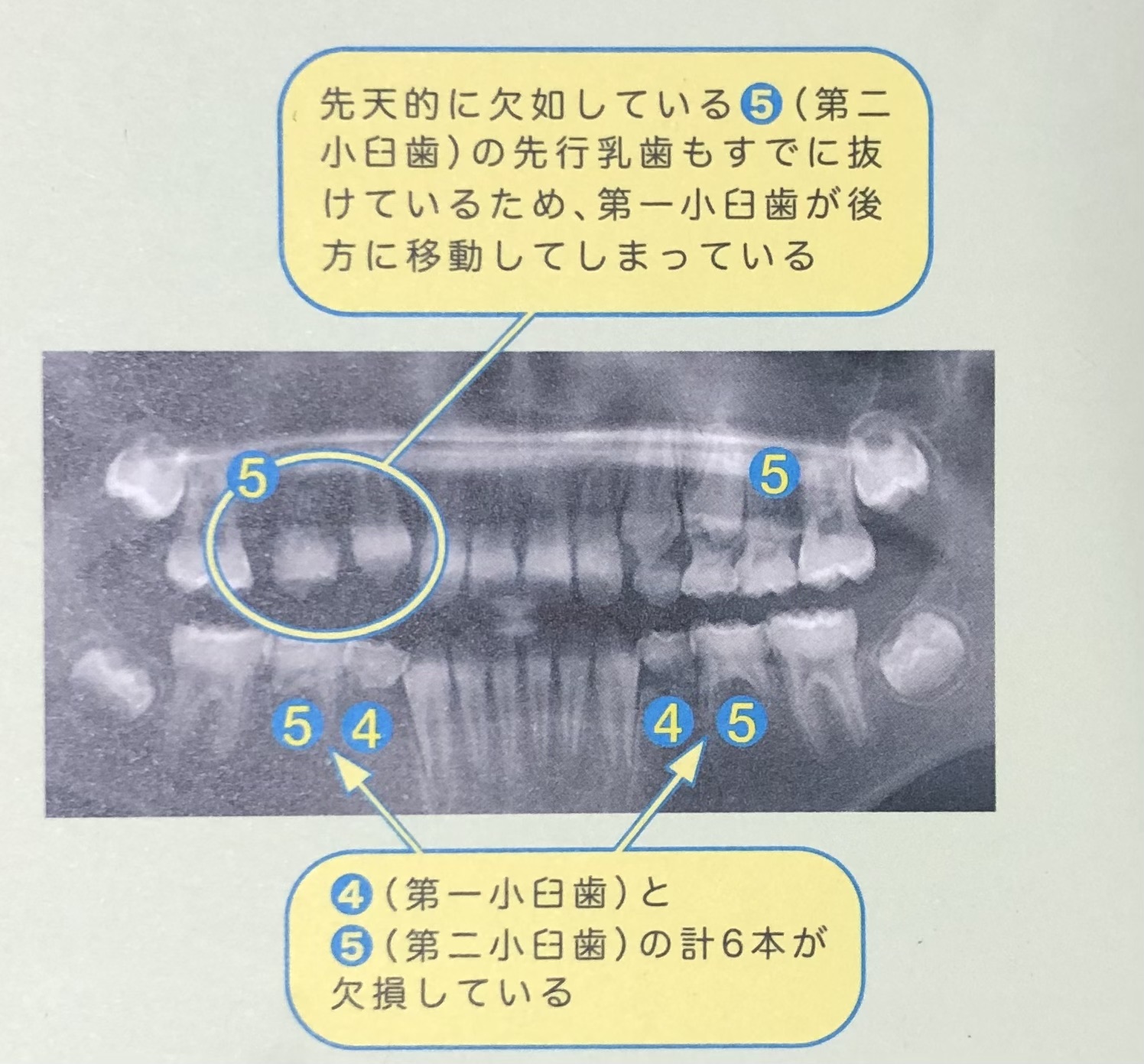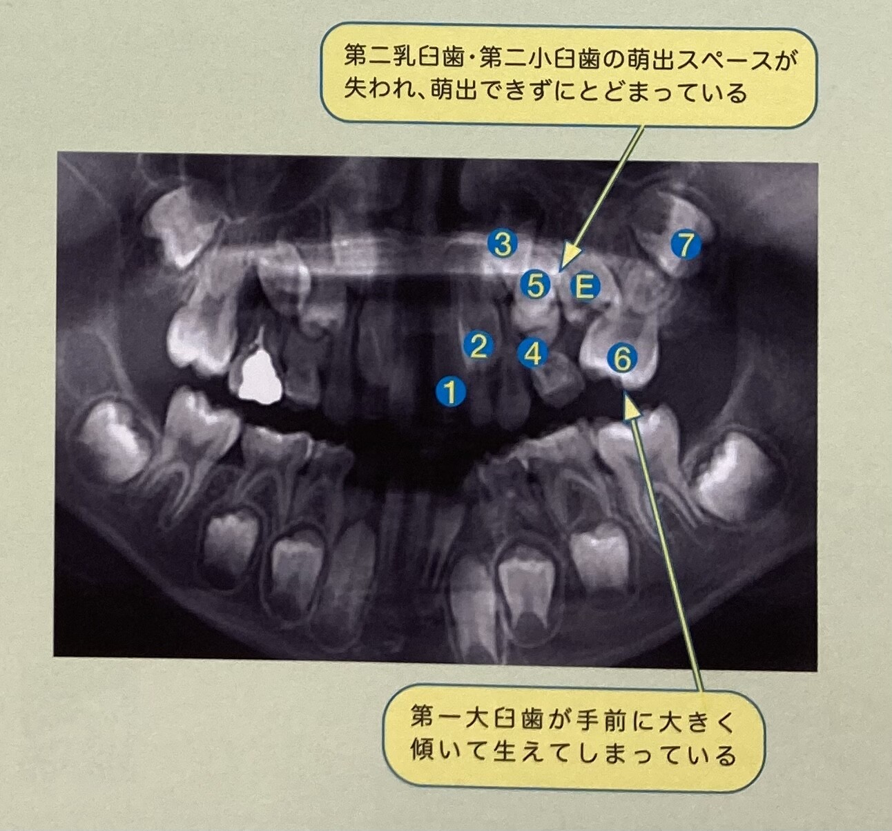 写真の右側(本人の顔では左上側)に比べ、他の部位は永久歯が育っていないことが分かります。