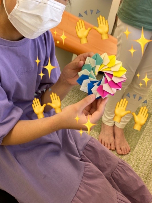 2022 7月 31 20:53:16 難易度高め!折り紙女子♡ こんにちは(╹◡╹)コーディネーターの佐藤です。皆さん、暑い毎日が続いていますが夏バテは大丈夫ですか?私は食欲がない日もありますが、【今日は食べれるぞ!】という日はモリモリ食べて栄養蓄える様にしています!今のところ夏には負けていません(о´∀`о) さて、ある日の午前中。 お母さんと一緒に通院中のちーちゃん。お母さんの診察が終わるまで時間があったので折り紙タイムです。『自分で折れる1番難しいの作って♡』の私の難題にサラッと答えてくれました。 お見事!!
