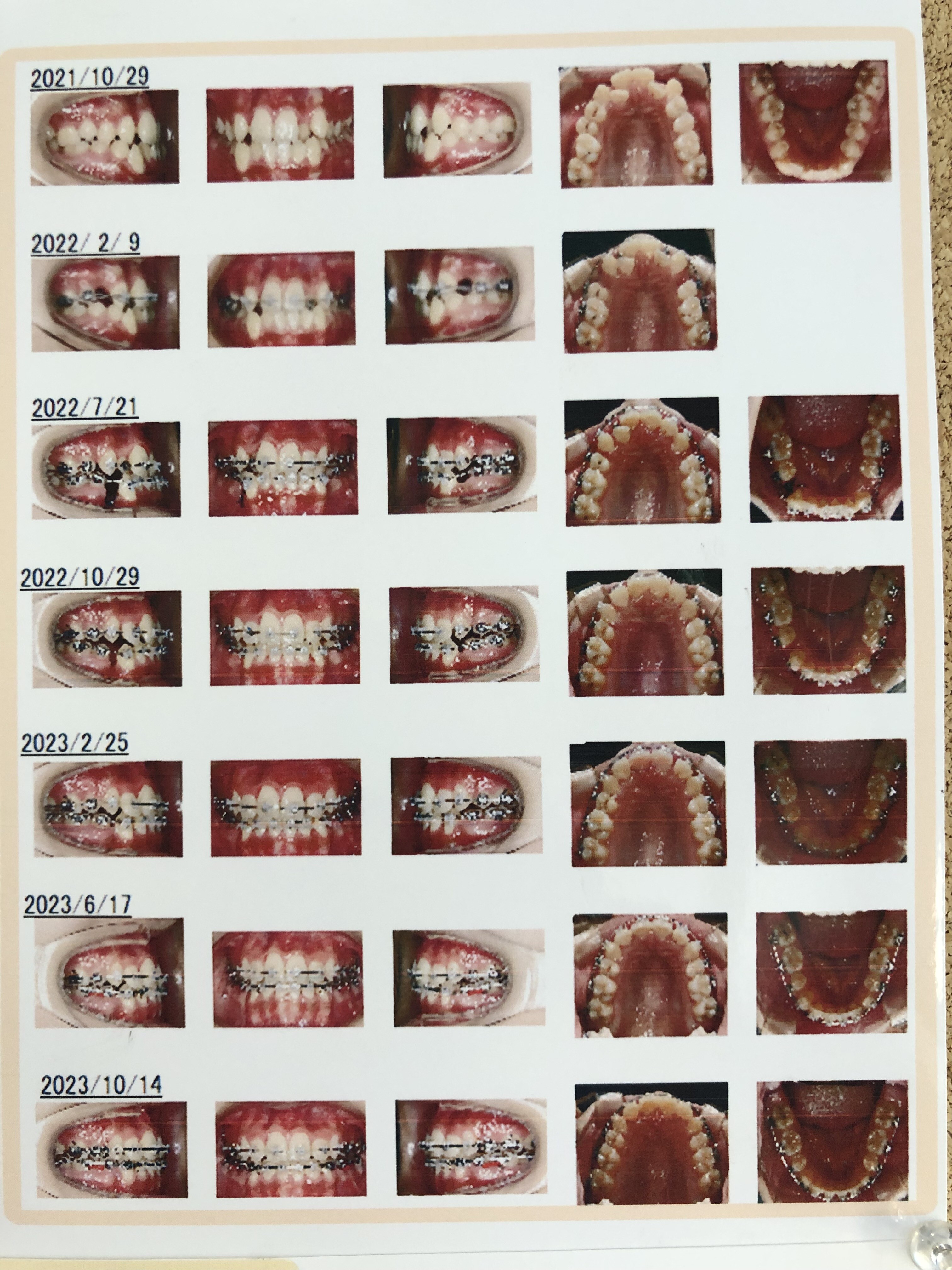 上にある写真が治療開始前の歯になり、下に行く程に最新の物になります。