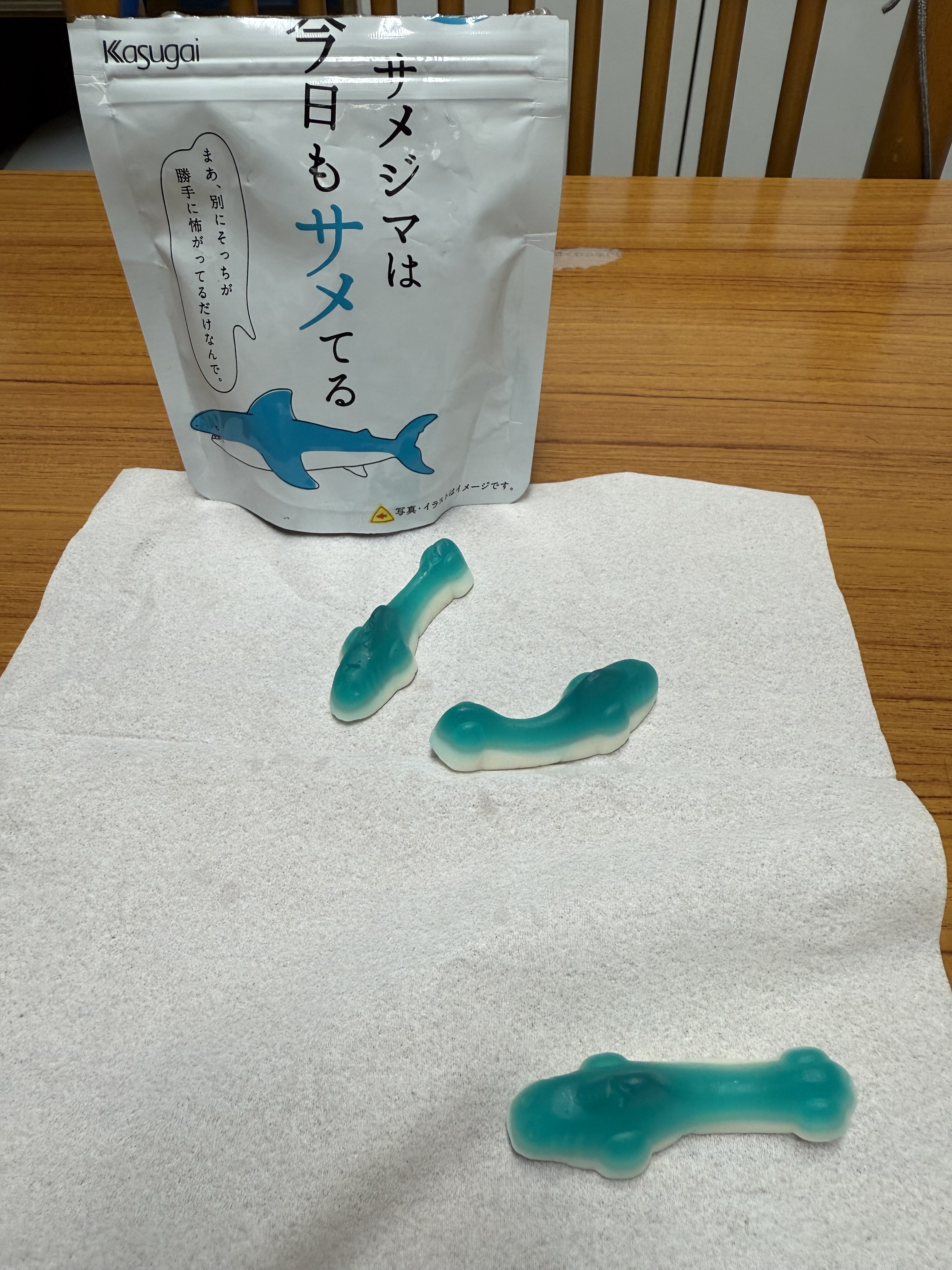 2025 7月 18 12:43:00 人気のサメジマくん こんにちは、スタッフの大川です。最近スタッフ間でグミが流行っており時々交換しているのですが、今日はあるスタッフがとても可愛いグミをくれました!その名も「サメジマは今日もサメてる」です!サメの形が可愛く、一目見て虜になりました。味も爽やかで美味しく、大きいのにぺろっと食べられるグミでした。みなさんもぜひ見かけたら試してみてください! カテゴリなしの他の記事 < 前の記事次の記事 > コメント コメントフォーム 名前 コメント 記事の評価 リセット リセット 顔 星 情報を記憶 コメントを投稿する